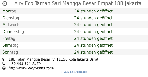 | Montag | 24 stunden geöffnet | |||||