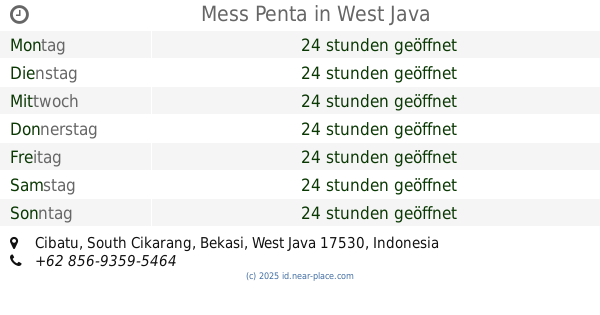 | Mittwoch | 24 stunden geöffnet | |||||