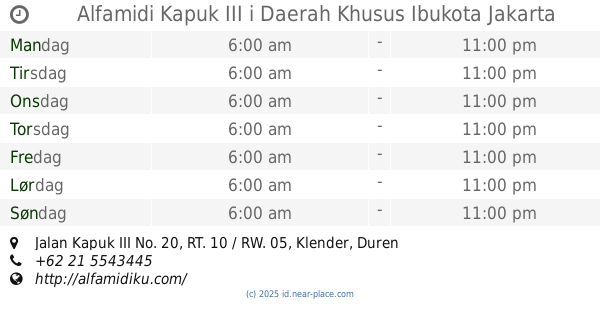 | Onsdag | åben 24 timer | |||||