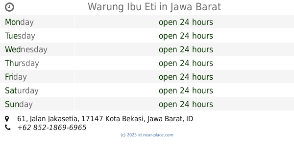 | Friday | open 24 hours | |||||